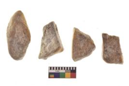 | Description / विवरण | There are n 4 of utilized worked cores and show irregular scar pattern on both dorsal and ventral side. Two have a broken tip. |
