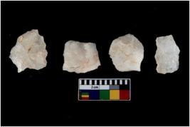| Description / विवरण | There are n 4 of utilized worked cores and show irregular scar pattern on both dorsal and ventral side. Two have a broken tip. |