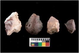 | Description / विवरण | There are n 4 of utilized worked cores. They show multidirectional irregular scar pattern. |