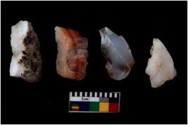 | Description / विवरण | There are n -4 of utilized worked cores and show multidirectional irregular scar pattern on both dorsal and ventral sides. Two have a broken tip. |