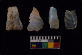 | Description / विवरण | There are n 4 Flake Core ; there are multidirectional irregular scar pattern on them. Some of them are tapering at one end with sharp edges. |