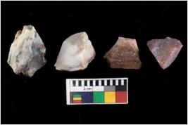 | Description / विवरण | There are n 4 of utilized worked cores. They show multidirectional irregular scar pattern. Three have a broken tip. |