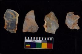 | Description / विवरण | There are n 4 Flake Core ; There are multidirectional irregular scar pattern on them. Some of them are tapering at one end. One of them flat thick bottom and pointed functional top. |