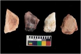 | Description / विवरण | There are n 4 of utilized worked cores. They show multidirectional irregular scar pattern and have sharp edges. Two have broken tip. |