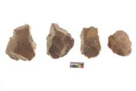 | Description / विवरण | There are n 4 of utilized worked cores and show irregular scar pattern on both dorsal and ventral side. One has a broken tip. |