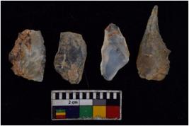 | Description / विवरण | There are n 4 Flake Core ; There are multidirectional irregular scar pattern on them. Some of them are tapering at one end. One of them flat thick bottom and pointed functional top. |