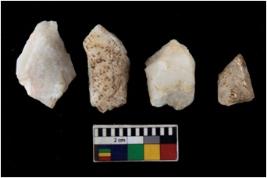 | Description / विवरण | There are n 4 of utilized worked cores. They show multidirectional irregular scar pattern. They are tapering on one end. |