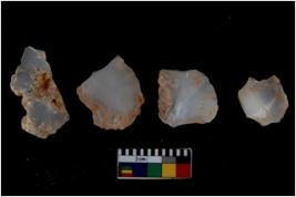 | Description / विवरण | There are n 4 flake cores. All of them are fully fluted flake cores without any trace of crested ridge flakes. Some are tapering at one end and some have sharp edges. |