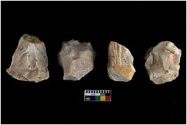 | Description / विवरण | There are n 4 of utilized worked cores and show irregular scar pattern on both dorsal and ventral side. Two have broken tip. |