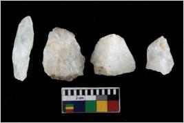 | Description / विवरण | There are n 4 of utilized worked cores. They show multidirectional irregular scar pattern. One is elongated in shape. |