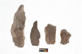 | Description / विवरण | There are n 4 of utilized worked cores and show irregular scar pattern on both dorsal and ventral side. Two are elongated in shape. |