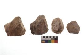 | Description / विवरण | There are n 4 of utilized worked cores and show irregular scar pattern on both dorsal and ventral side. Two have a flat base. |