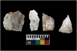 | Description / विवरण | There are n 4 of utilized worked cores. They show multidirectional irregular scar pattern. Three have broken tip. |