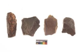 | Description / विवरण | There are n 4 of utilized worked cores and show irregular scar pattern on both dorsal and ventral side. One is elongated in shape. |