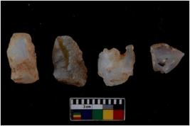 | Description / विवरण | There are n 4 flake cores. All of them are fully fluted flake cores without any trace of crested ridge flakes. Some are tapering at one end and some have sharp edges. |