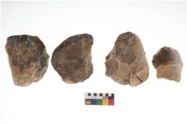 | Description / विवरण | There are n 4 of utilized worked cores and show irregular scar pattern on both dorsal and ventral side. One has a broken tip. |