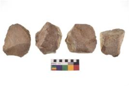 | Description / विवरण | There are n 4 of utilized worked cores and show irregular scar pattern. One has a broken tip. |