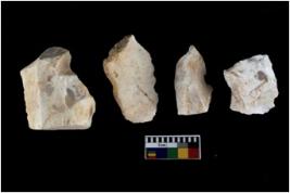 | Description / विवरण | There are n 4 of utilized worked cores and show irregular scar pattern on both dorsal and ventral side. Two have a broken tip. |