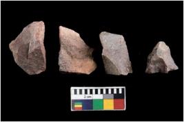 | Description / विवरण | There are n 4 of utilized worked cores. They show multidirectional irregular dominant scar pattern and have sharp edges. |