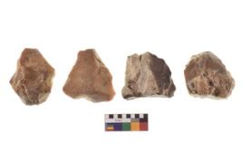 | Description / विवरण | There are n 4 of utilized worked cores and show irregular scar pattern. They have sharp edges and two have a broken tip. |