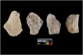 | Description / विवरण | There are n 4 of utilized worked cores and show irregular scar pattern on both dorsal and ventral side. Three have a flat base. |