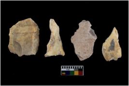 | Description / विवरण | There are n 4 of utilized worked cores and show irregular scar pattern on both dorsal and ventral side. Three are tapering at one end. |