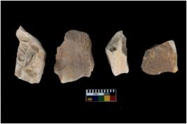 | Description / विवरण | There are n 4 of utilized worked cores and show irregular scar pattern on both dorsal and ventral side. One has a broken tip. |