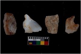 | Description / विवरण | There are n 4 flake cores. All of them are fully fluted flake cores without any trace of crested ridge flakes. Some are tapering at one end and some have sharp edges. |