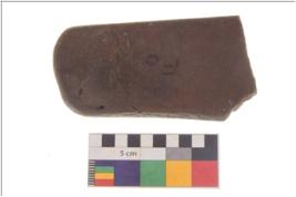 | Description / विवरण | Specimen of a large rectangular shaped sharpener, with a flat upper side.Only one side is heavily used. |