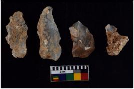 | Description / विवरण | There are n 4 cores; There are multidirectional irregular scar pattern on them. Some of them are tapering at one end. One of them flat thick bottom and pointed functional top. |