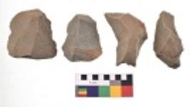 | Description / विवरण | There are n 4 utilized flake cores. There are multidirectional irregular dominant scar pattern on both dorsal and ventral face of the flake cores. Two are tapering at one end and two have blunted edges. |