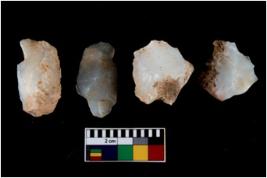 | Description / विवरण | There are n 4 utilized flake cores. There are multi directional irregular scar pattern on them. One has blunted edge and three have round edges. |