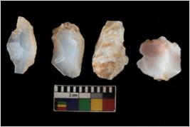 | Description / विवरण | There are n 4 utilized flake cores. There are multi directional irregular scar pattern on them. Two are tapering at one end and two have blunted edges. |
