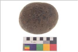 | Description / विवरण | Specimen of a spherical shaped hammer stone with battered surface. |
