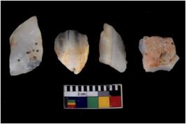 | Description / विवरण | There are n 4 of utilized worked cores and show multidirectional irregular scar pattern on both dorsal and ventral sides. |