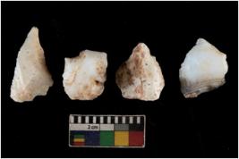 | Description / विवरण | There are n 4 utilized flake cores. There are multi directional irregular scar pattern on them. Two have sharp edges and two have blunted edges. |