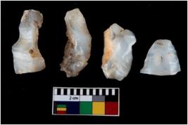 | Description / विवरण | There are n 4 utilized flake cores. There are multi directional irregular scar pattern on them. One is tapering at one end and three have blunted edges. |