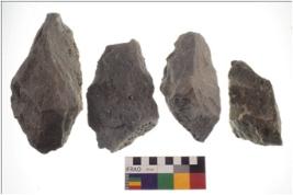 | Description / विवरण | There are n 4 flakes tool; there are multidirectional irregular scar pattern on them; made of short flakes and all four have tapering edges. |