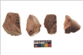 | Description / विवरण | Specimen of core tools with prominent flaking marks. They are made up of a short flakes with sides trimmed. |