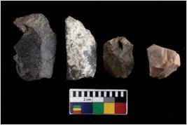 | Description / विवरण | There are n 4 of utilized worked cores. They show multidirectional irregular scar pattern. Two are tapering on one end. |