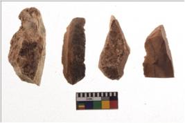 | Description / विवरण | There are n 4 utilized flake cores. There are multidirectional irregular scar pattern on both dorsal and ventral face of the flake cores. One has sharp edges and three have blunted edges. |