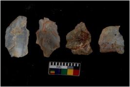 | Description / विवरण | There are n 4 flake cores. All of them are fully fluted flake cores without any trace of crested ridge flakes. Some are tapering at one end and some have sharp edges. |