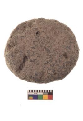 | Description / विवरण | Specimen of an oval shaped rubber stone with circular section and concave end. |