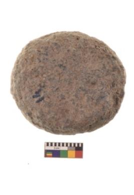 | Description / विवरण | Specimen of an oval shaped rubber stone with circular section and concave end. |