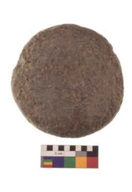 | Description / विवरण | Specimen of an oval shaped rubber stone with circular section and concave end. |