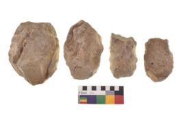 | Description / विवरण | There are n 4 of utilized worked cores and show irregular scar pattern. Two are tapering at one end. |