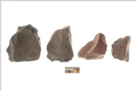 | Description / विवरण | There are n 4 flakes tool; there are multidirectional irregular scar pattern on them; made of short flakes and all four have tapering edges. |