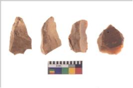 | Description / विवरण | There are n 4 utilized flake cores. There are multidirectional irregular scar pattern on both dorsal and ventral face of the flake cores. One has sharp edges and three have blunted edges. |