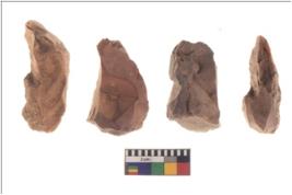 | Description / विवरण | Specimen of core tools with prominent flaking marks. They are made up of a short flakes with sides trimmed. |