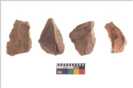 | Description / विवरण | There are n 4 utilized flake cores. There are multidirectional irregular scar pattern on both dorsal and ventral face of the flake cores. One has sharp edges and three have blunted edges. |